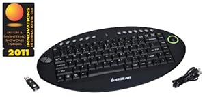 IOGear's innovative new 2.4GHz Wireless On-Lap Keyboard with Optical Trackball and Scroll Wheel gives you the comfort and freedom of 33 feet wireless connectivity between you and your PS3 or other game console, home theater PC/computer and HDTV. The ergonomic design is contoured on the back of the keyboard enhancing the user experience by comfortably resting on your lap, making the way you wirelessly interact with your content easier, efficient, and practical for continuous usage. It's the ideal solution for continuous usage by optimizing comfort and convenience with its specially designed contoured fitting. The On-Lap Keyboard also has a very well thought out placement of an additional left click button on same side as the trackball for convenient, practical and precise singlehanded navigation. No driver needed, just plug in the included USB RF Receiver and you're ready to go.